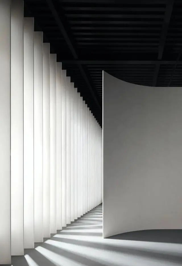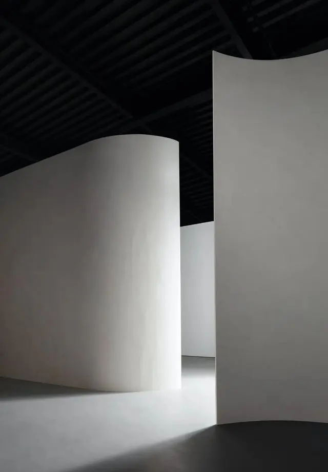 我們運(yùn)用波浪形的墻壁來劃分空間,有利于引領(lǐng)看展人從一個空間移動到另一側(cè)空間。