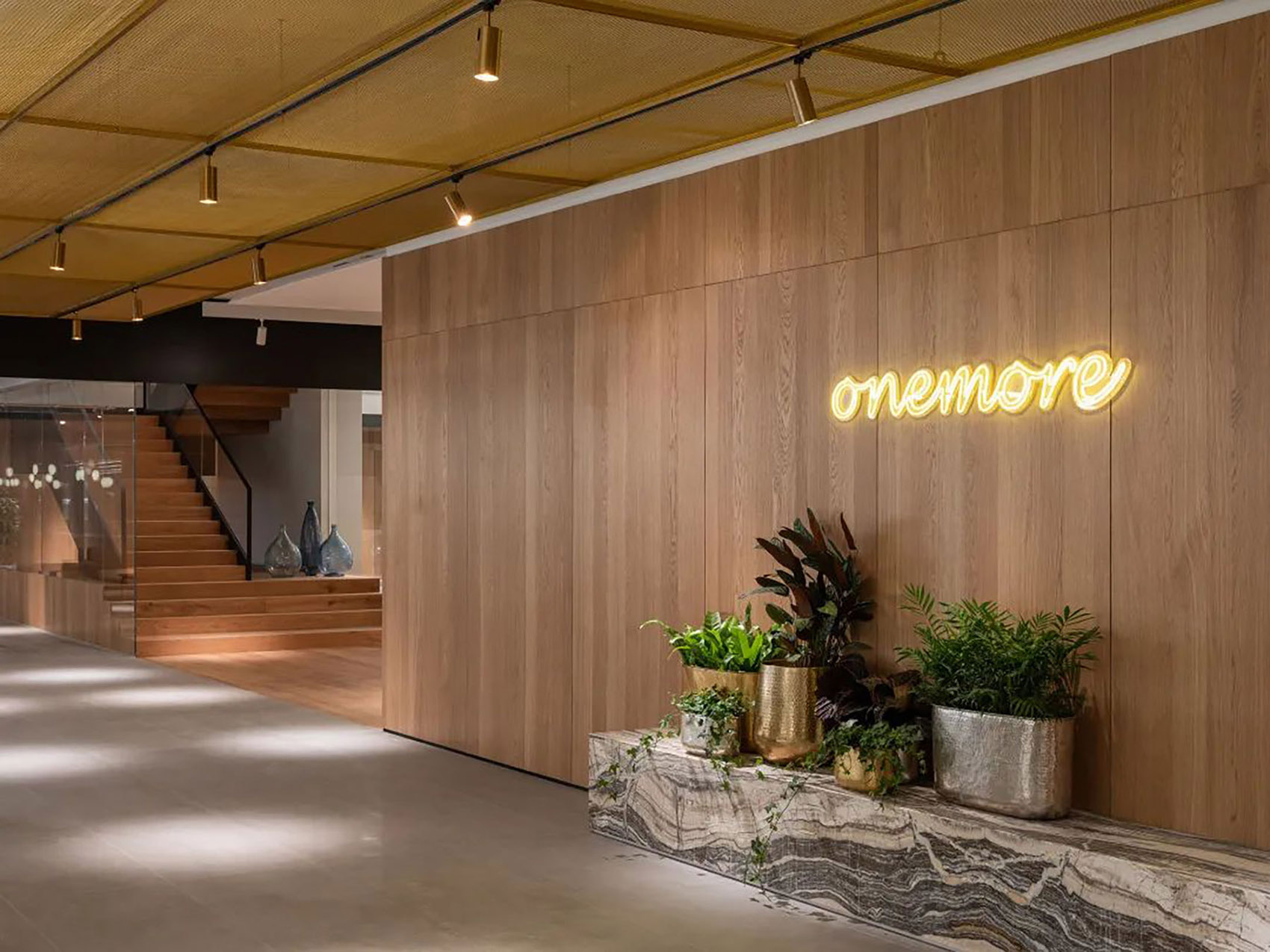 ONEMORE的總部辦公空間,不僅從空間營造上找到了能夠適應當下工作氛圍的方法,也為研究“聚集性空間的消解與轉化”提供了一種前瞻性的思考。將空間設計的重心放在了“尋找辦公歸屬感”和“多互動的環保有氧空間上的設計理念上”,為品牌打造一個能激發更大協作意識和創造力的空間。
