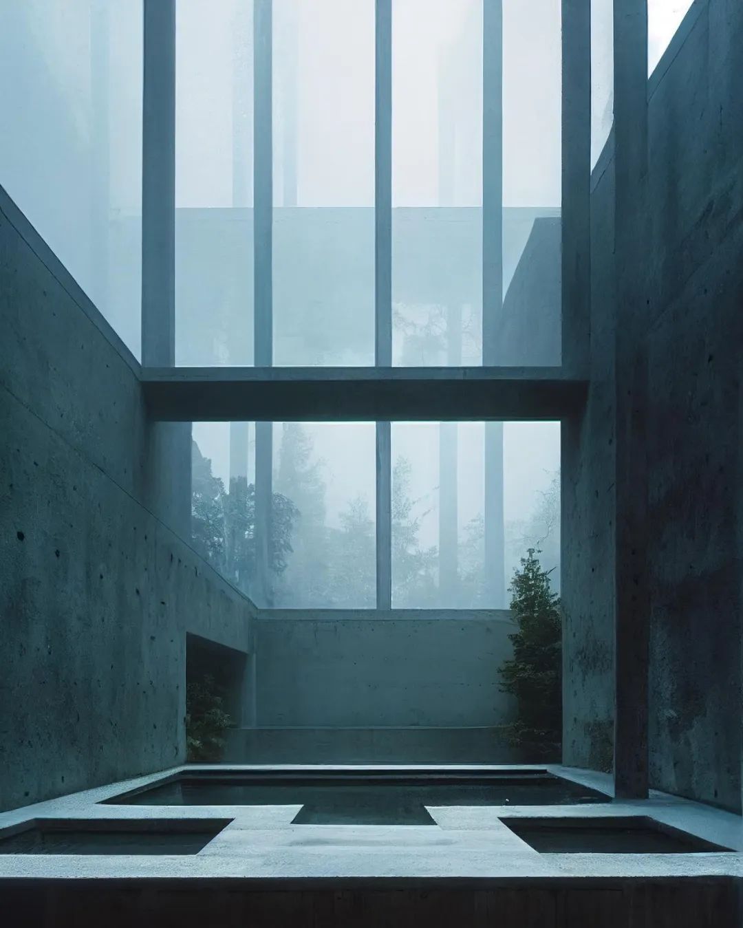 建筑事務所Studio Arkhagen將Midjourneyai等AI繪畫工具作為設計的輔助手段,憑借對程序輸入詞匯的不斷調試創作了一系列更貼合現實的建筑作品,并在此基礎上模擬自然的真實景觀,闡述自己對于環境與未來建筑發展方向的思考。