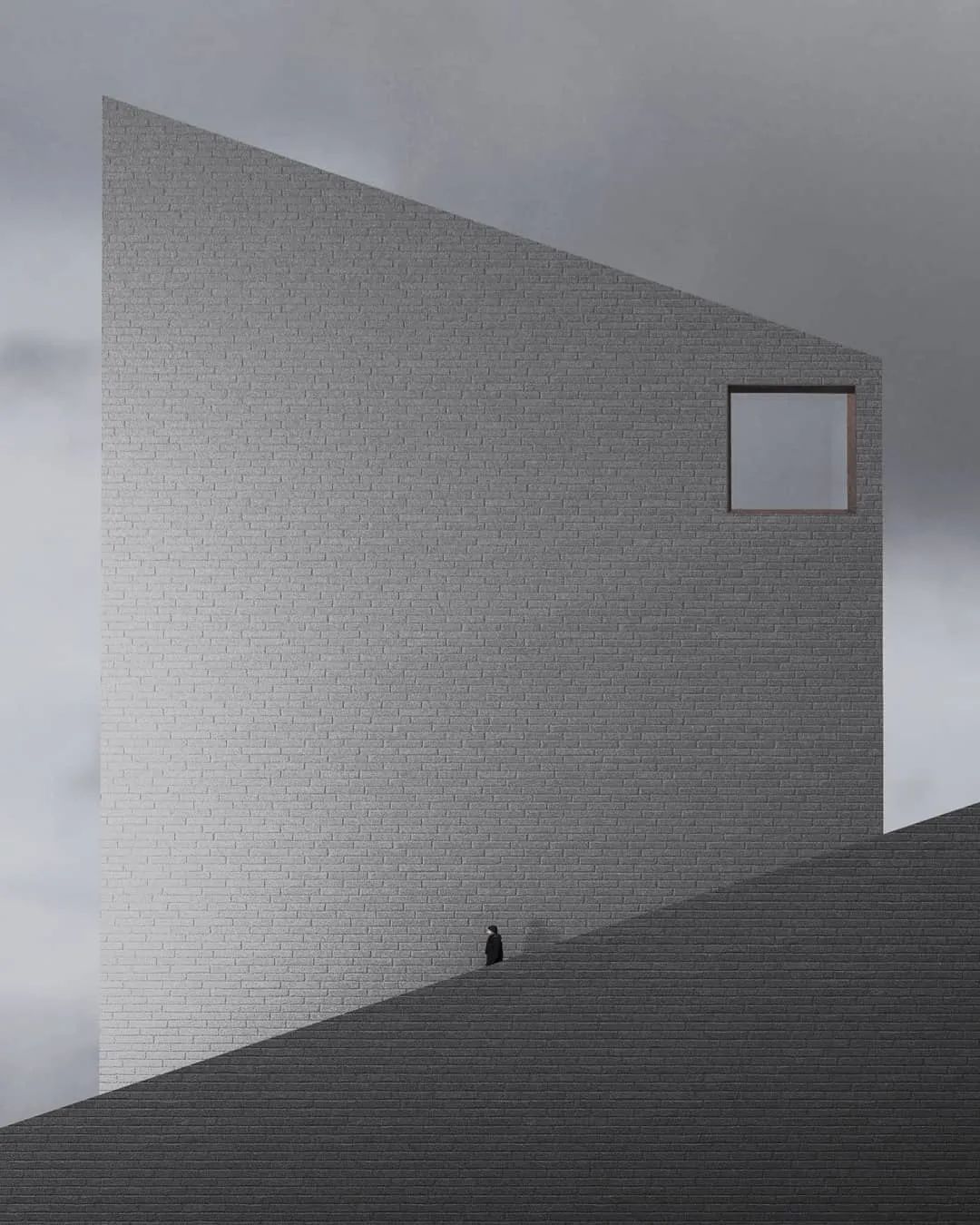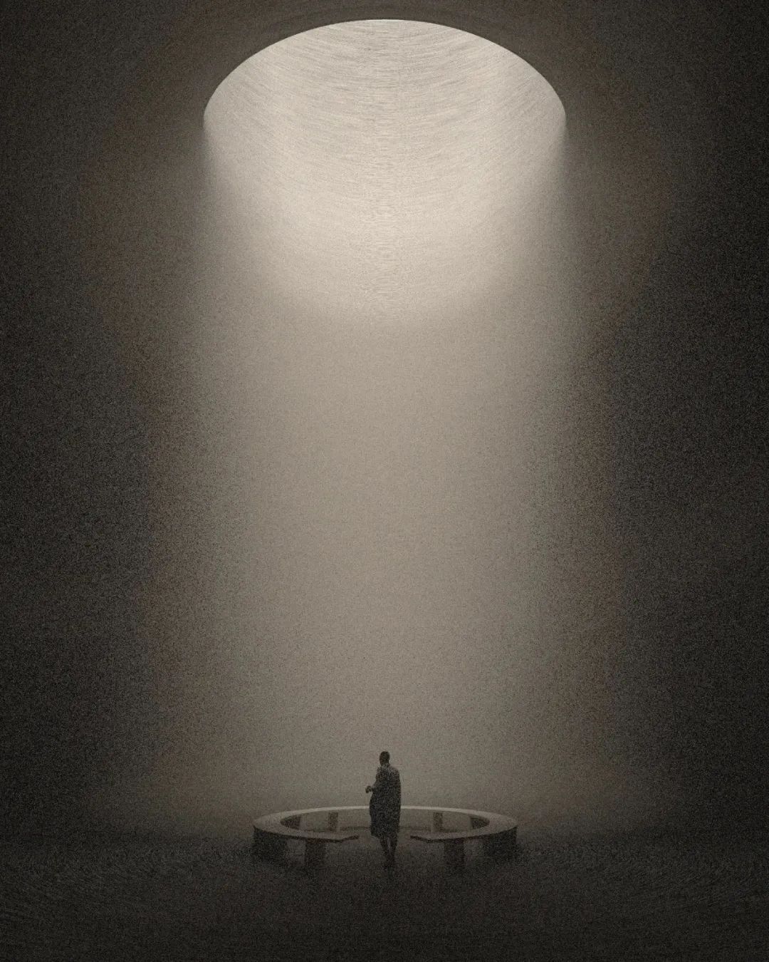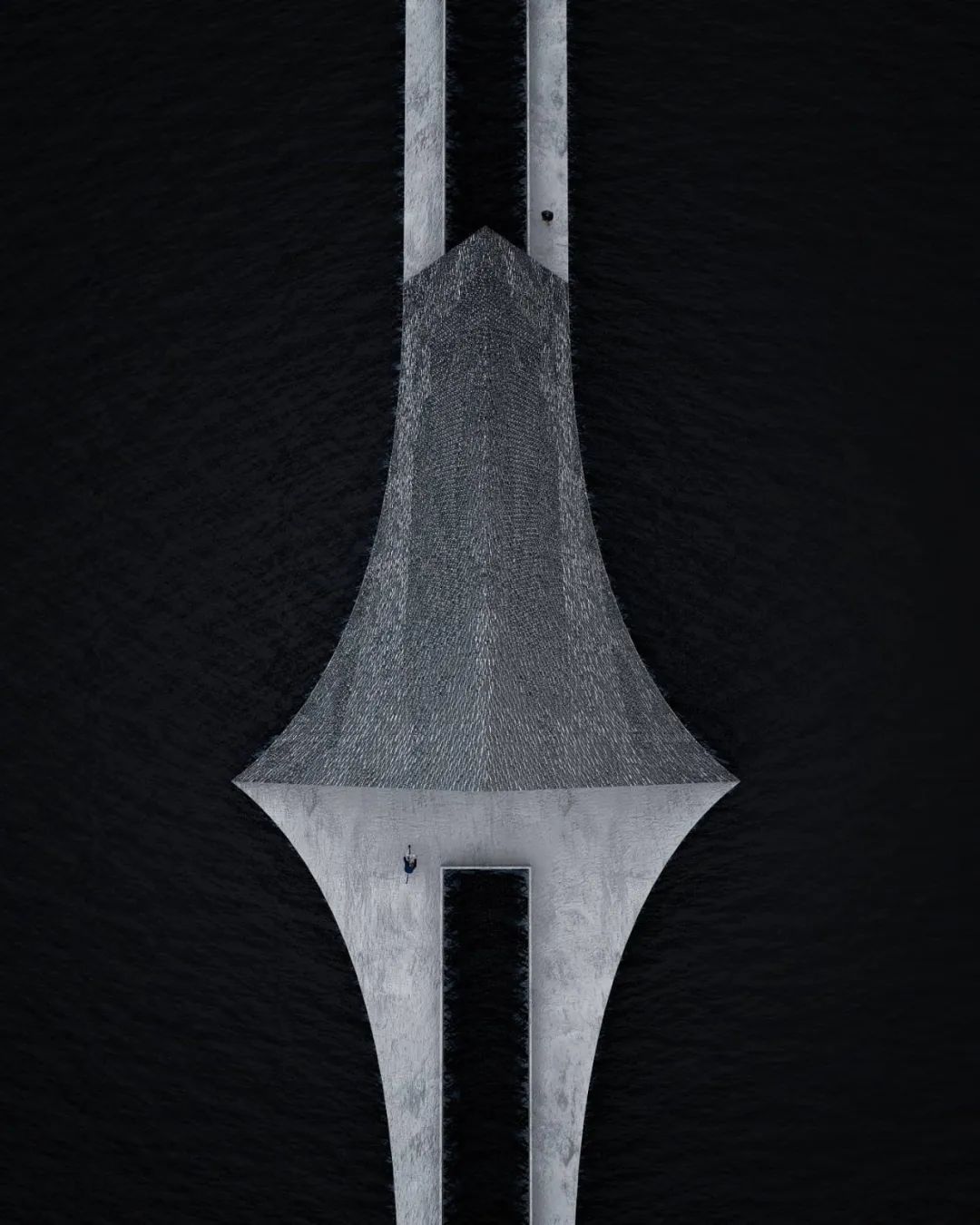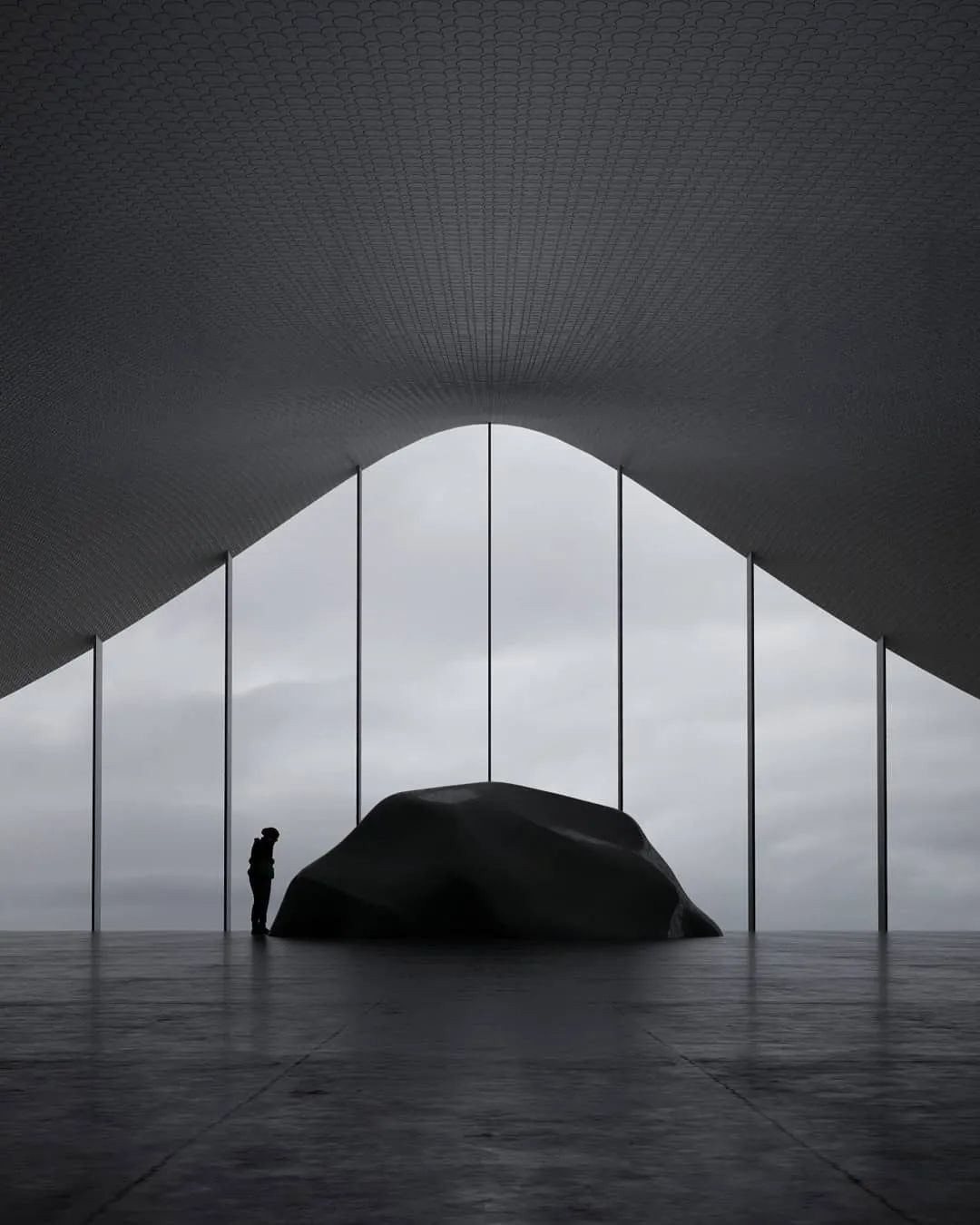這些深蘊神秘力量的場景同時還具有極簡主義的哲學性,夸張的線條與孤獨的人物剪影互為對照,并以理念與精神層次的表達填補畫面的留白,激發人們的情感共鳴。那些為人所熟知的建筑因過大的尺度而變得十分陌生,Per Carlsen希望通過超現實的場景令人們重新審視自身,關注因我們習以為常而被忽略的環境現實。